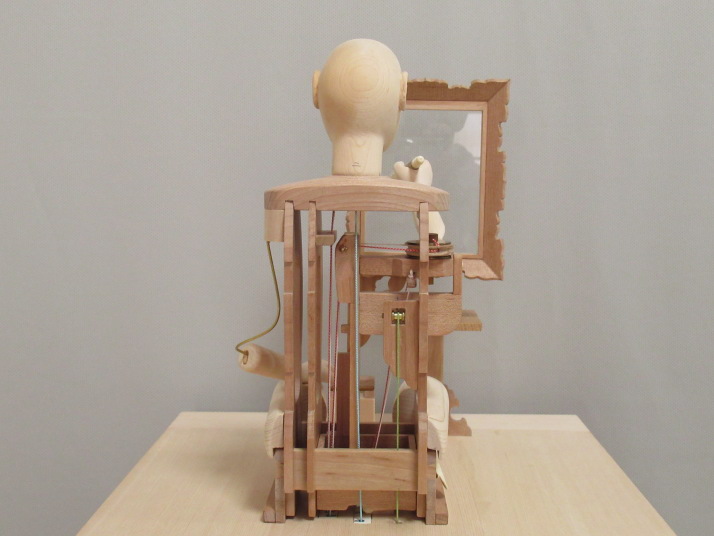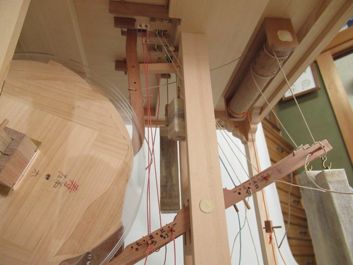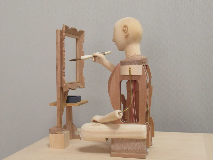 | 文字書き人形の機構(糸からくり部分)を解説するためのスケルトン模型です。 |